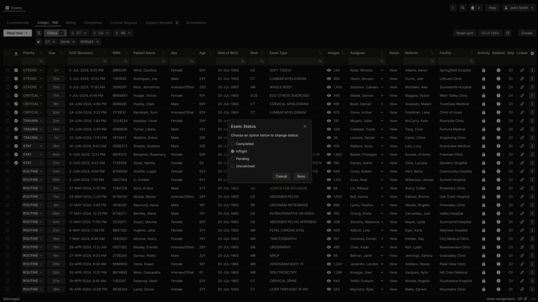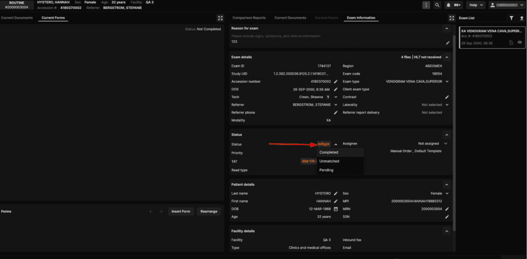 The ability to manually change exam status through the UI is controlled by role-based permissions. As this functionality is intended for troubleshooting rather than routine use, it is recommended that access be limited to administrators. |