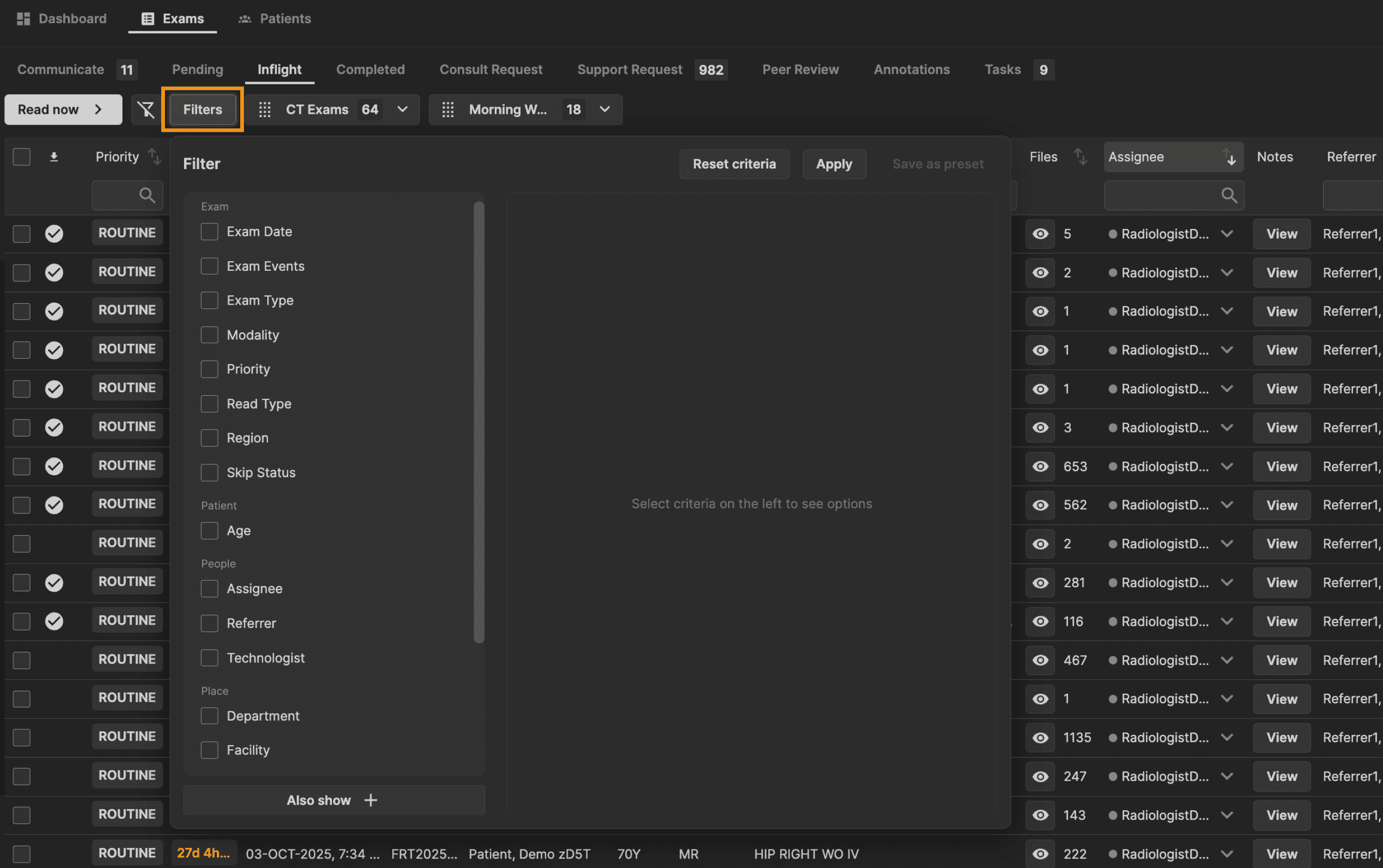 Select the necessary options. A number will appear next to the main criteria item to show the amount of options selected within that main criteria item. | |