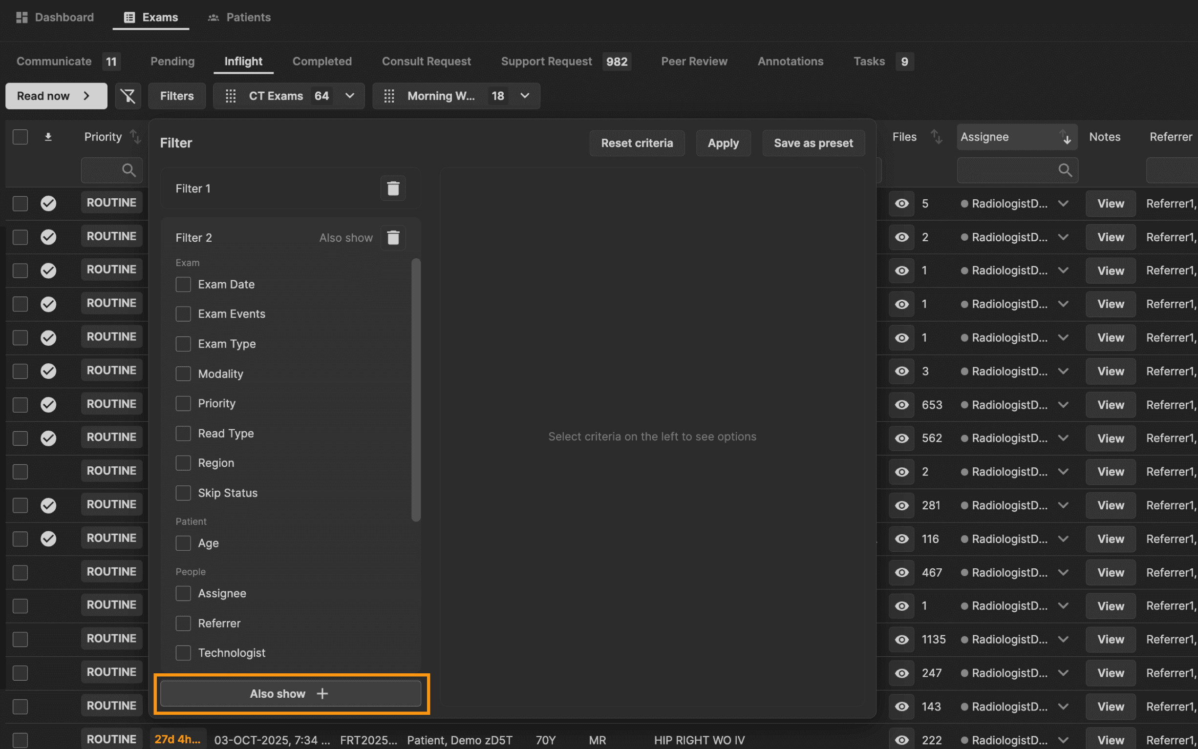 You can create different groups of criteria with the "Also show +" button at the bottom of the left panel. | |