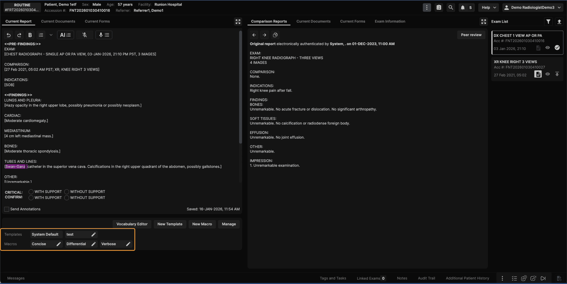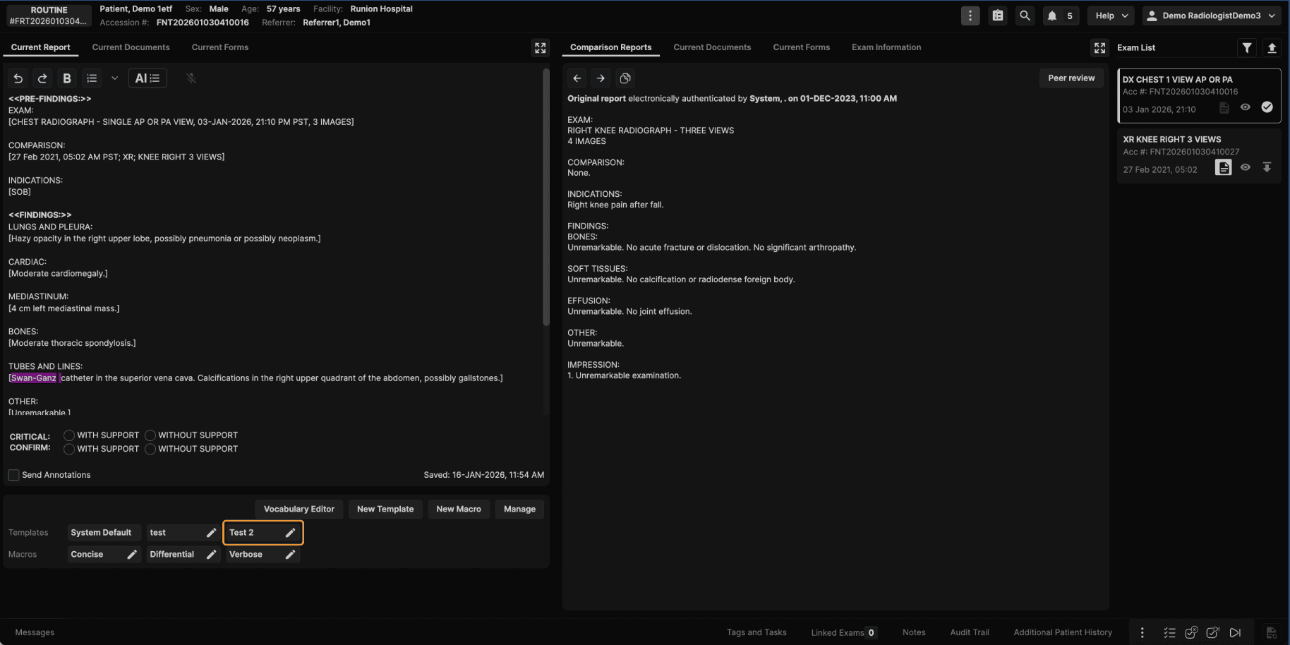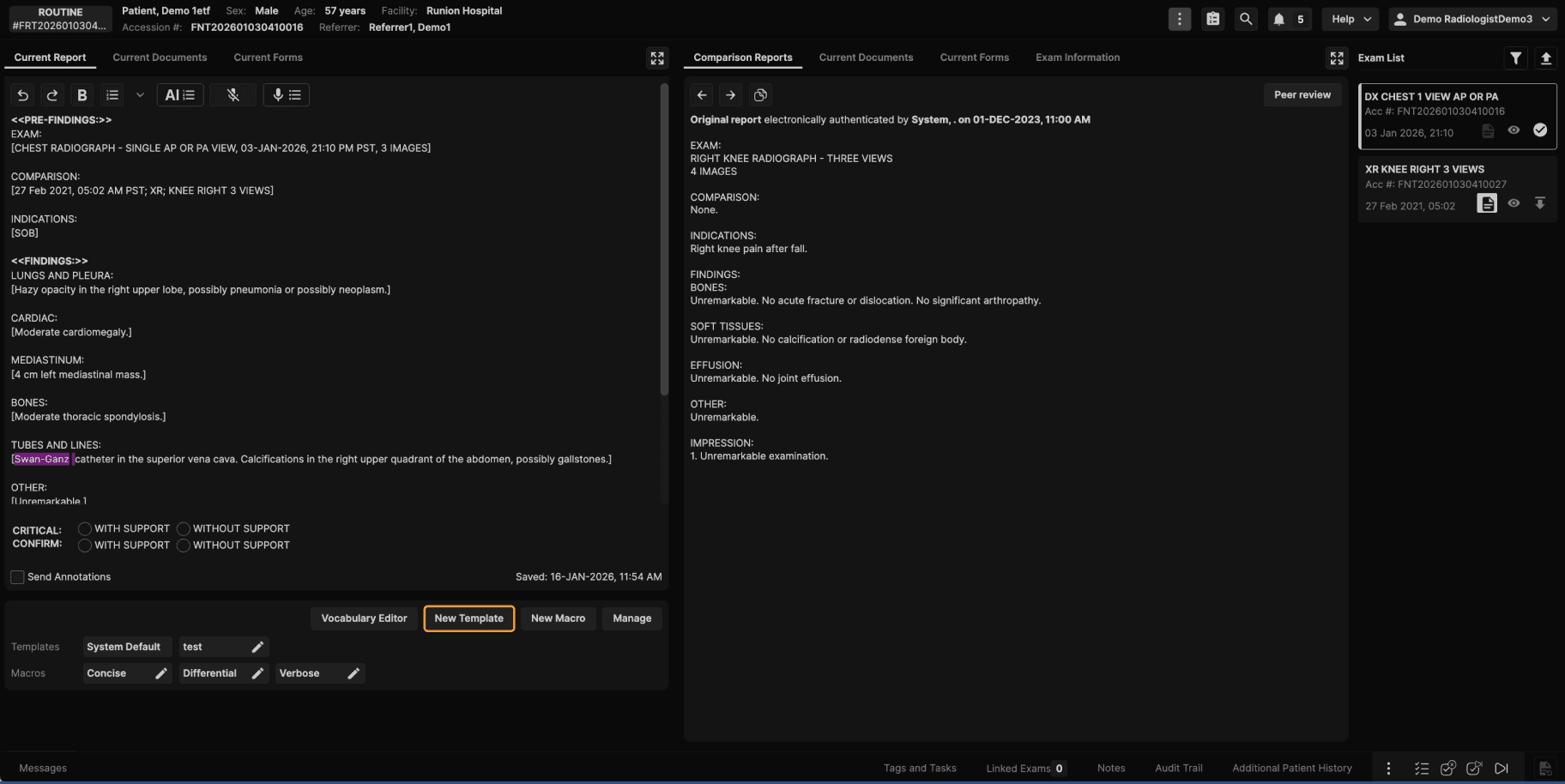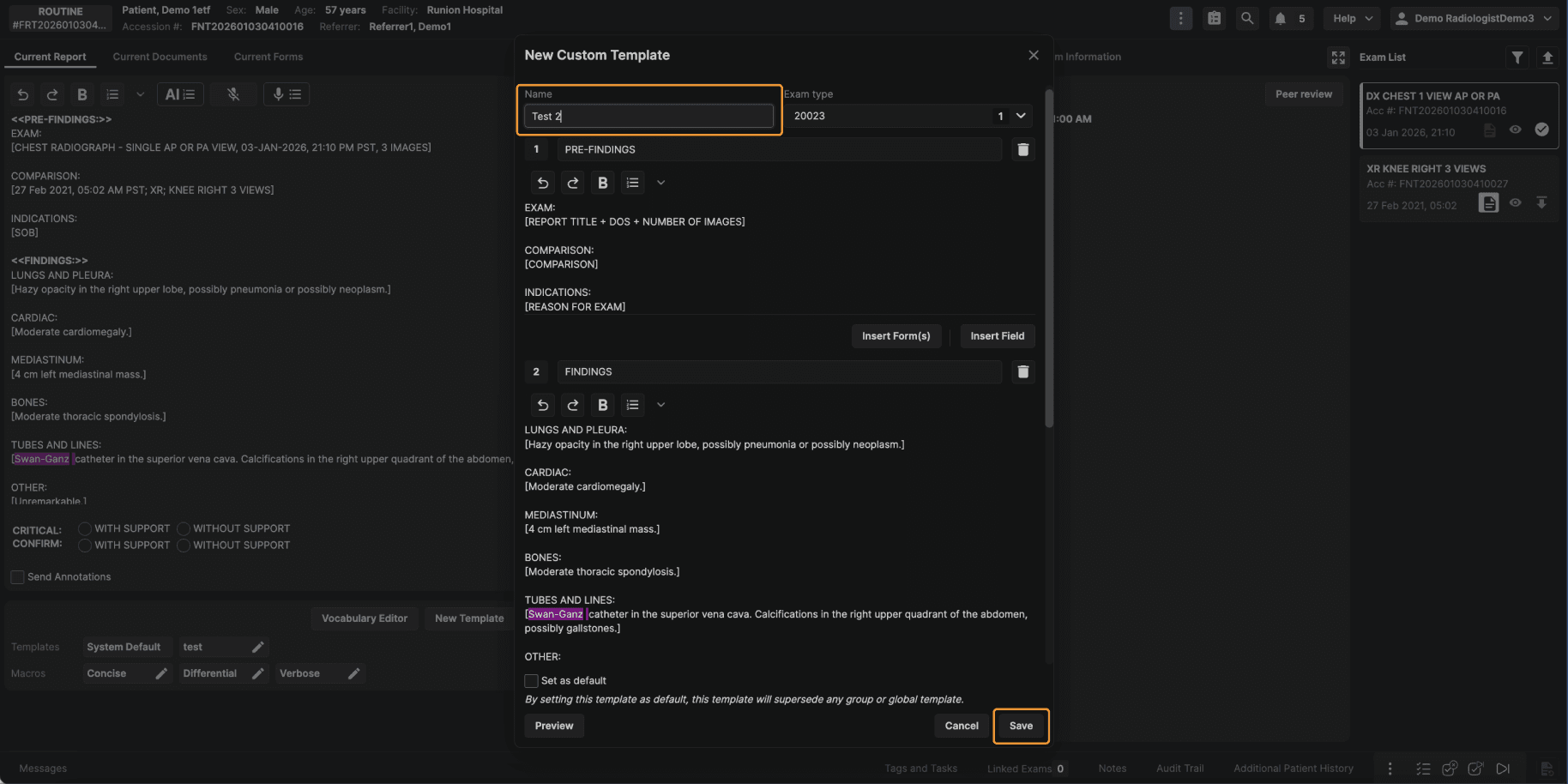 Step 9: Create a Template Directly From the Reporting Screen Reading physicians can also create templates while actively reporting. While working in the reporting screen: