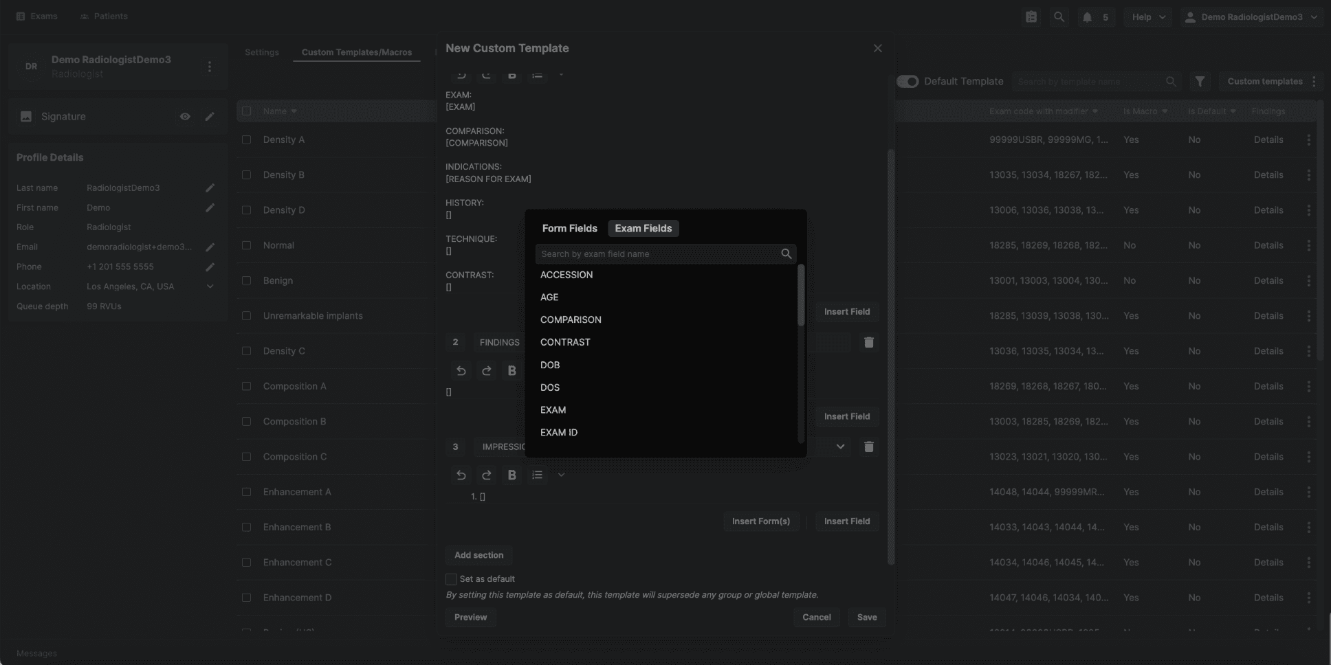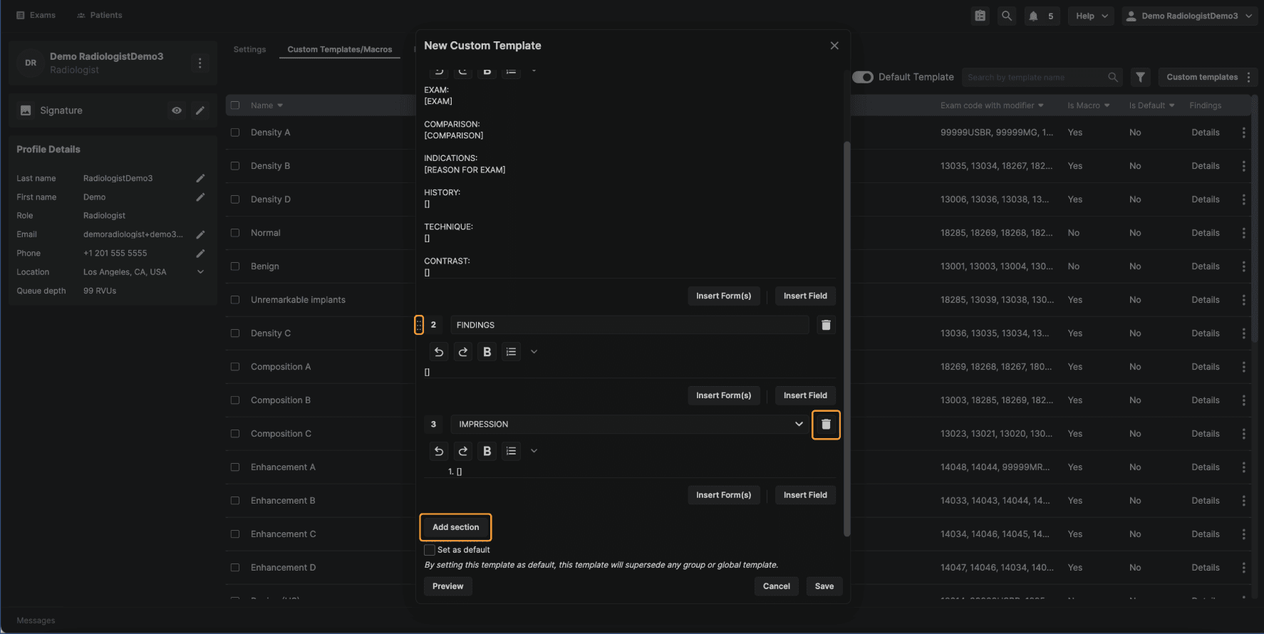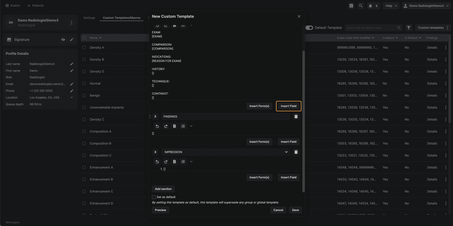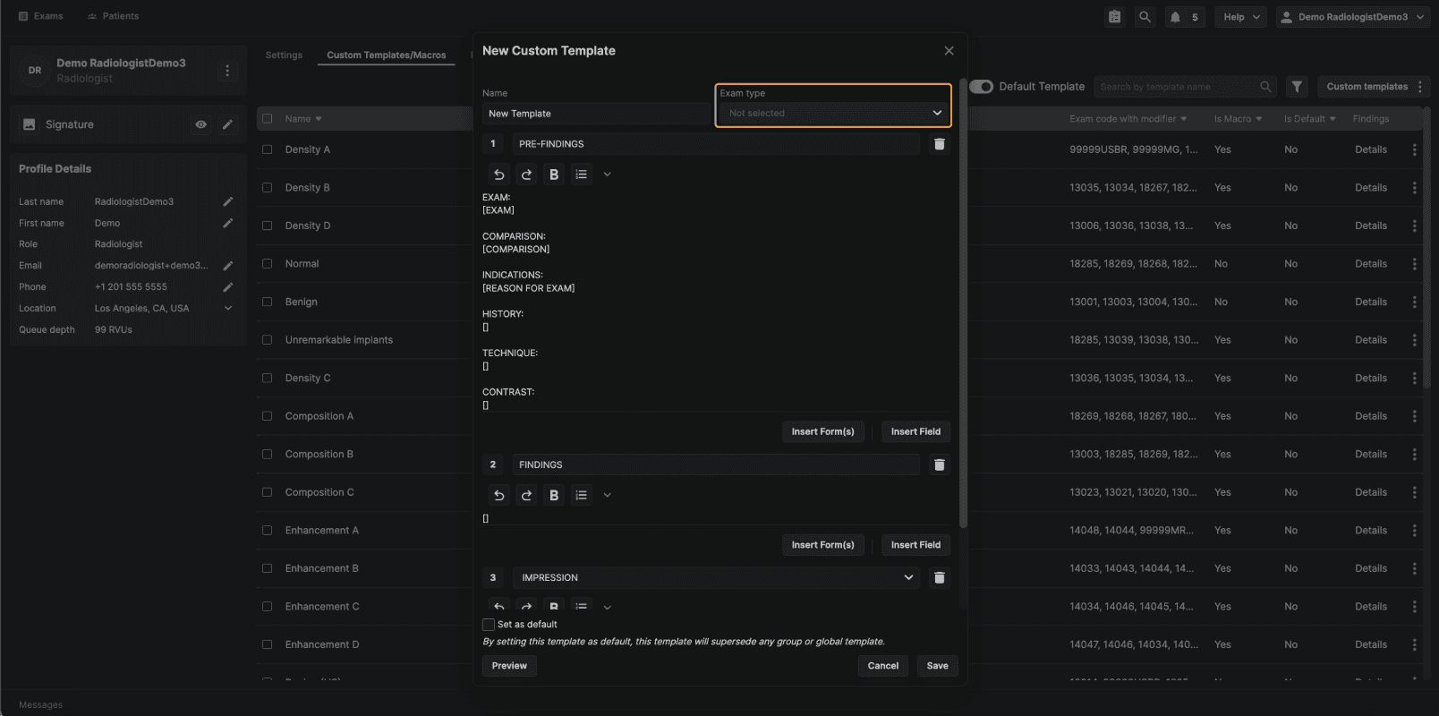 Step 6: (Optional) Set the Template as Default Reading physician–level templates include an option that is not available at other template levels: Set as Default.