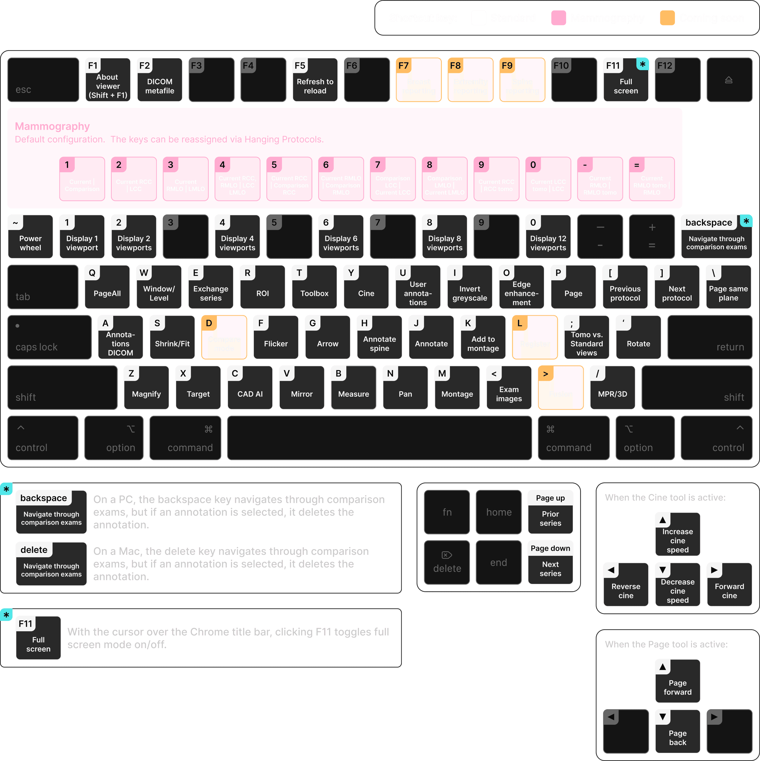 Mammography Hanging ProtocolsThe keyboard shortcuts can be assigned via Hanging Protocols. | |
