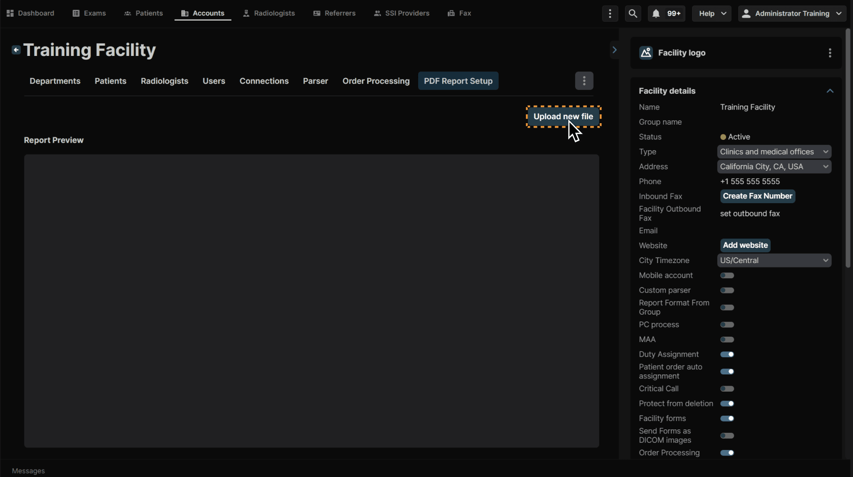 Click "Upload new file". You may upload a DOCX file containing the report design.