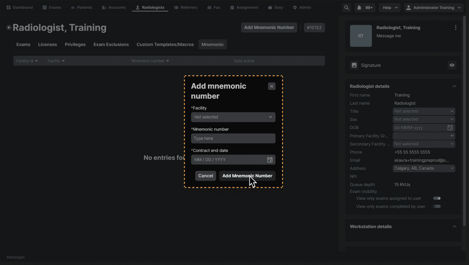 Add all required information. Click "Add Mnemonic Number" to confirm.