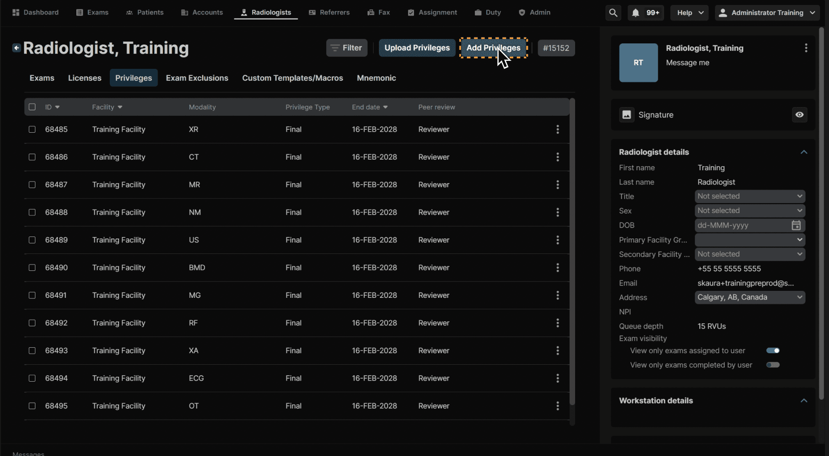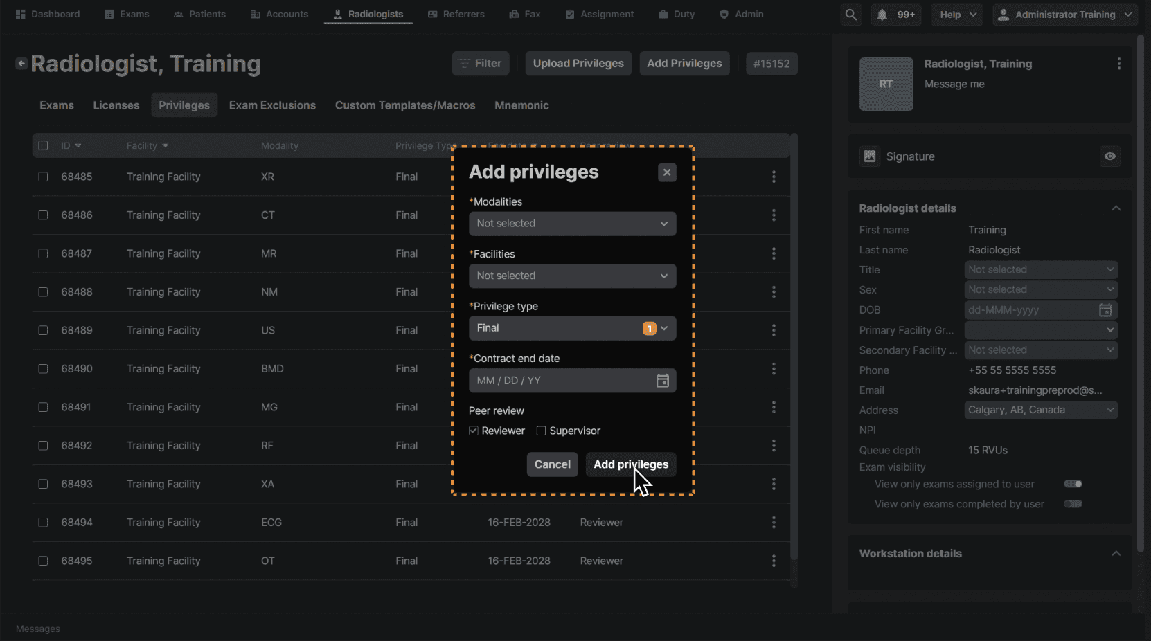 Use the drop down menus to add all required information. Click "Add privileges" to confirm. | |