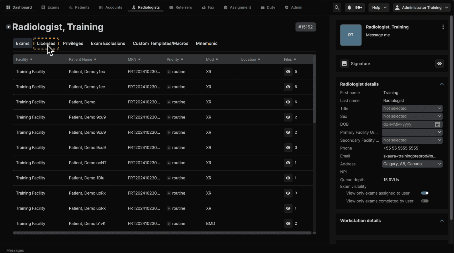 Next is Licenses. You also CANNOT add privileges for facilities in states the radiologist does not have a license in within the platform. | |