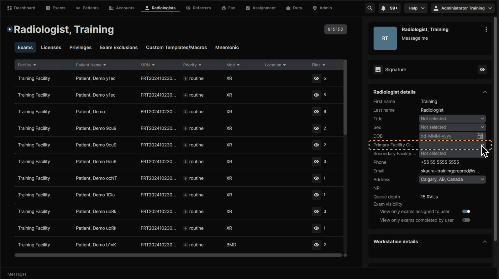 The first step in the process is adding the facility/facilities. You WILL NOT be able to add privileges or mnemonics for a facility until you add the facility to the radiologist account. | |