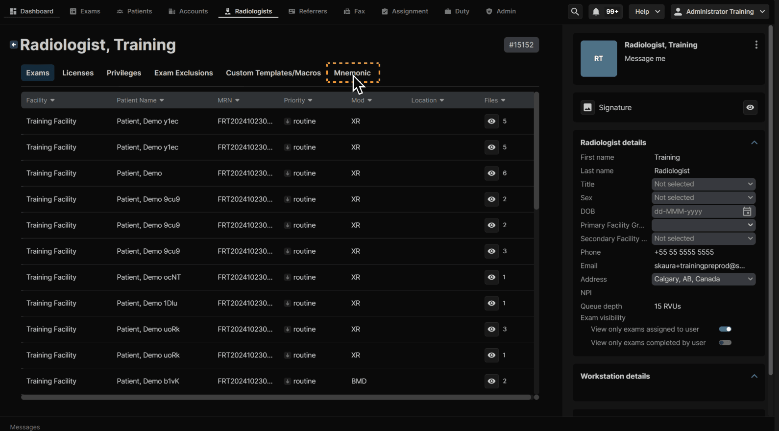 Finally Mnemonic. A radiologist's signature will not appear properly for the facility if the Mnemonic is not added. | |