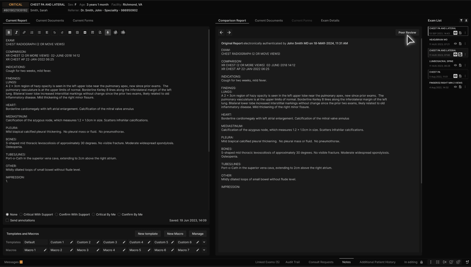 The Peer Review button appears in the “Comparison Report” tab in the right panel.