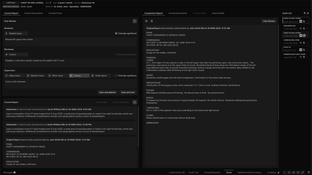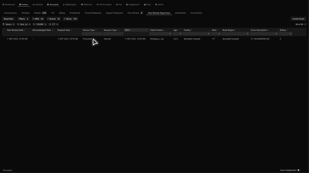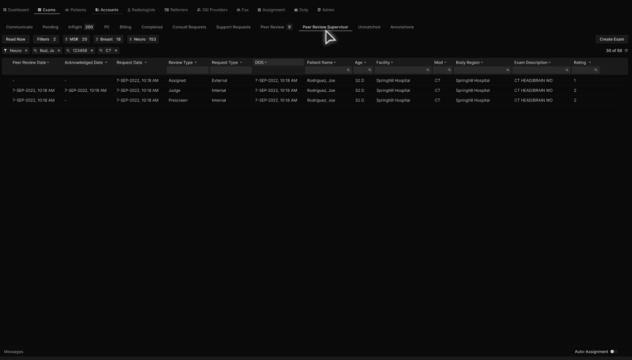 The “Peer Review Supervisor” tab can be accessed by any reading physician that has proper privileges. | |