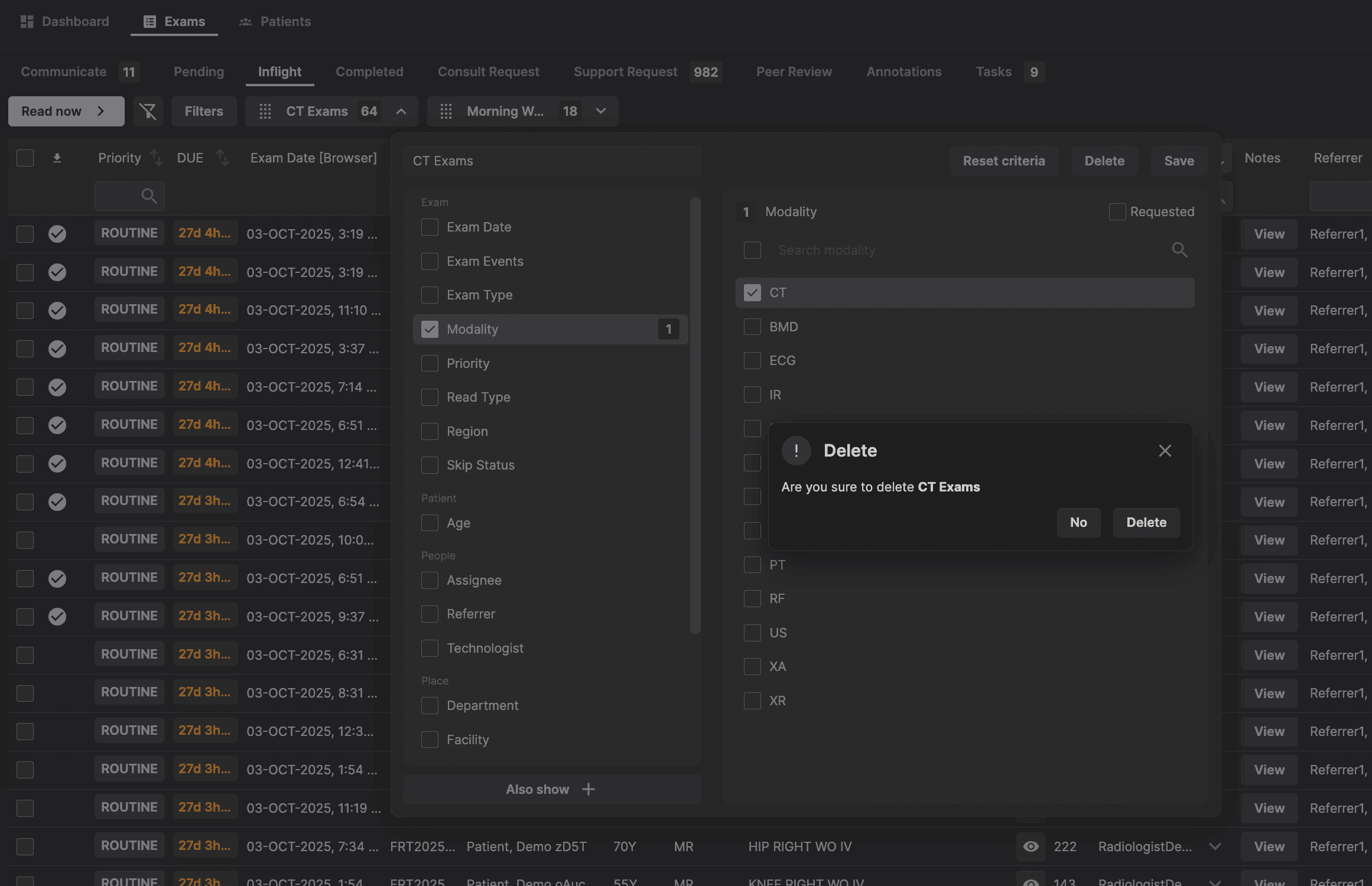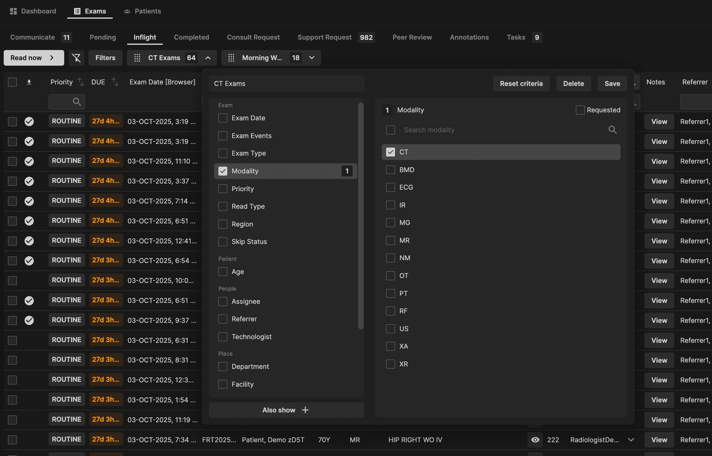 Edit a preset by clicking the drop down icon within the preset (in this example preset named: CT Exams). After editing, click "Save" to update the preset.