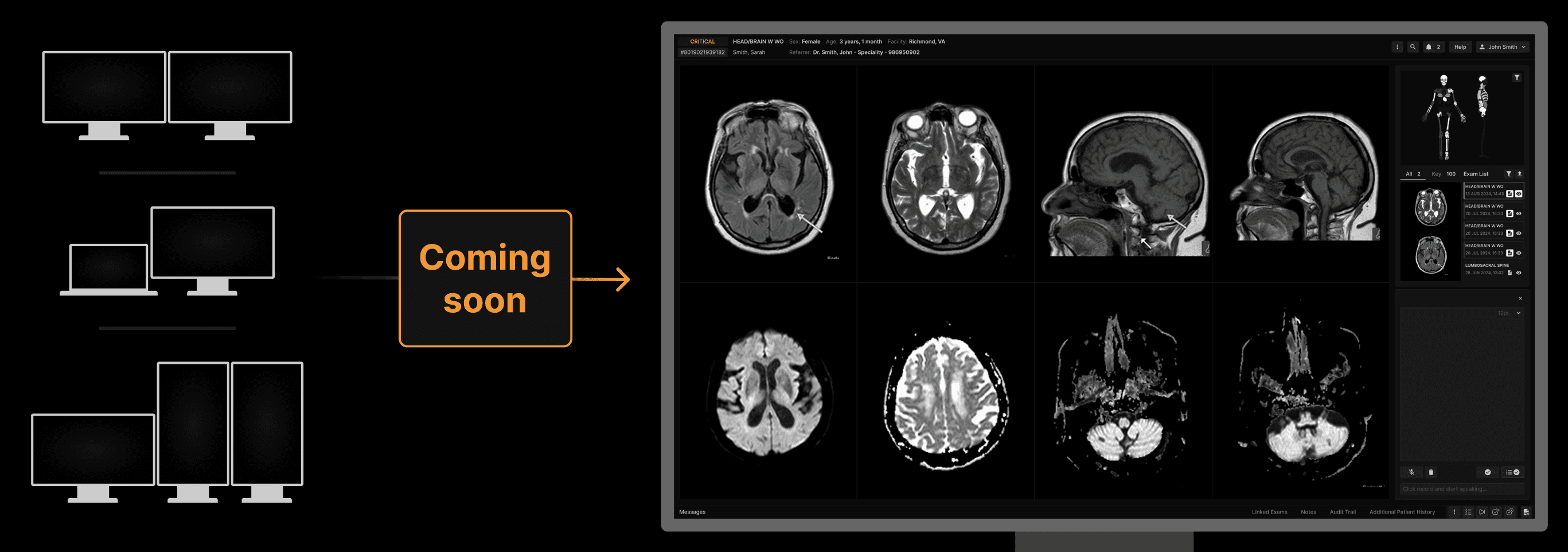 While we support multi-monitor workstations, we are developing a single monitor solution to facilitate focus and help reading physicians work in a cognitive state of flow. | ||