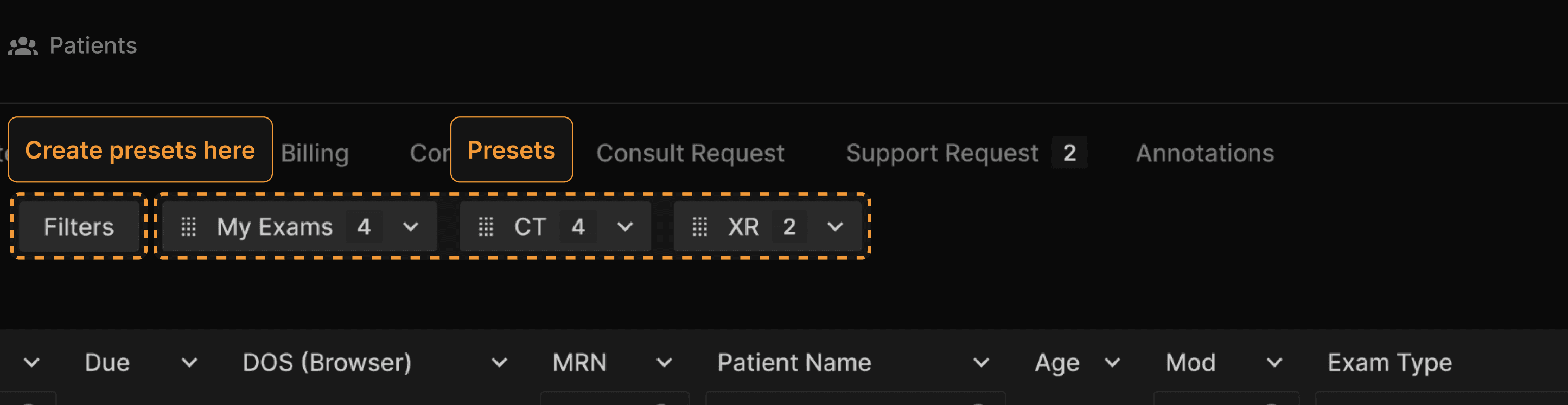 Configure Preset filters that meet your needs. The most commonly used Preset is My Exams. | ||