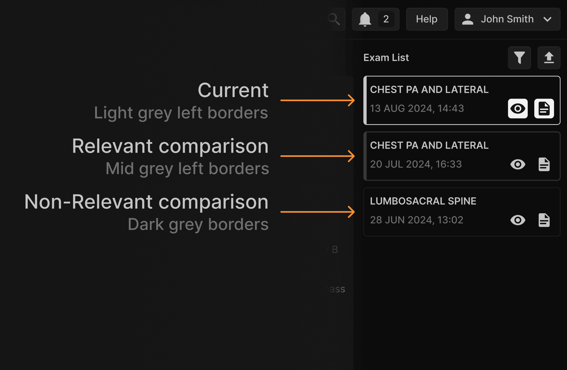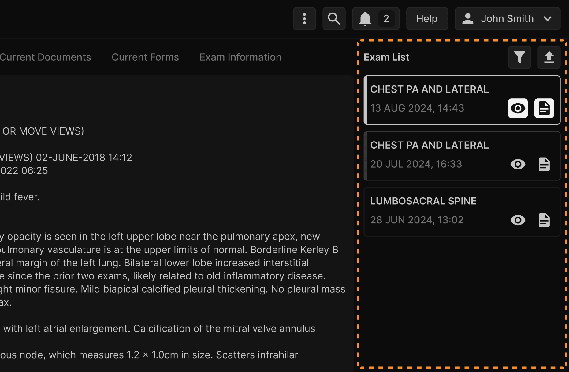 Displaying images or reports using the exam list panel | |||||||||||||||||||
