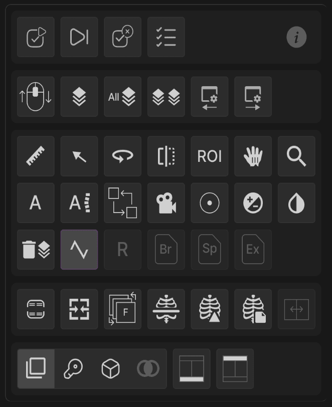 Reverse series order: Ctrl + R Invert image scrolling to switch directionality of scrolling compared to the modality’s default order for CT, MR, PT, and NM. (e.g.,head-to-foot vs. foot-to-head).