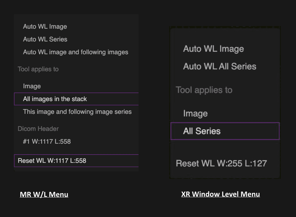 Auto Window Level (W/L) MR and XR now allows you to optimize image brightness and contrast automatically. | ||