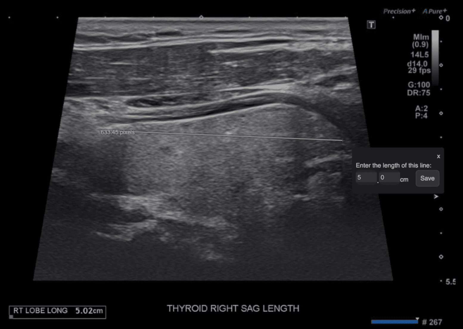 Calibrate uncalibrated images by drawing a reference line and entering its real length, so distance measurements use cm/mm instead of pixels. | ||