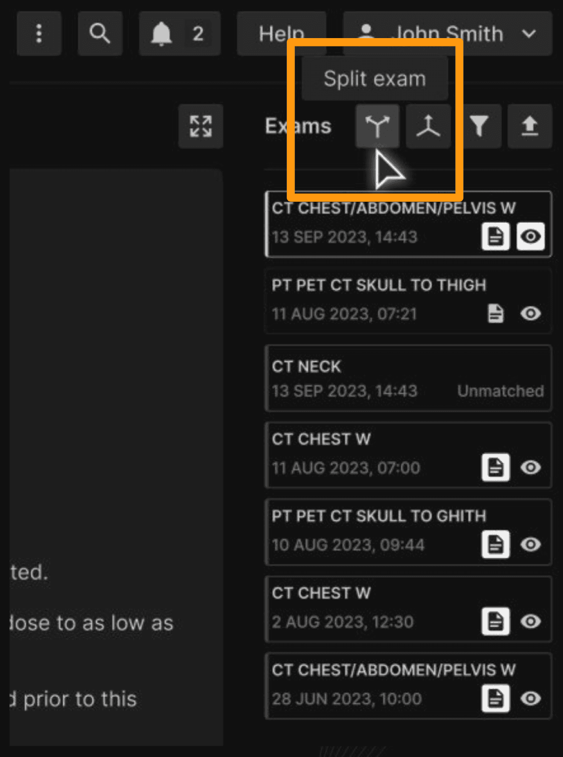 • Reassign part of an exam to a different patient.​