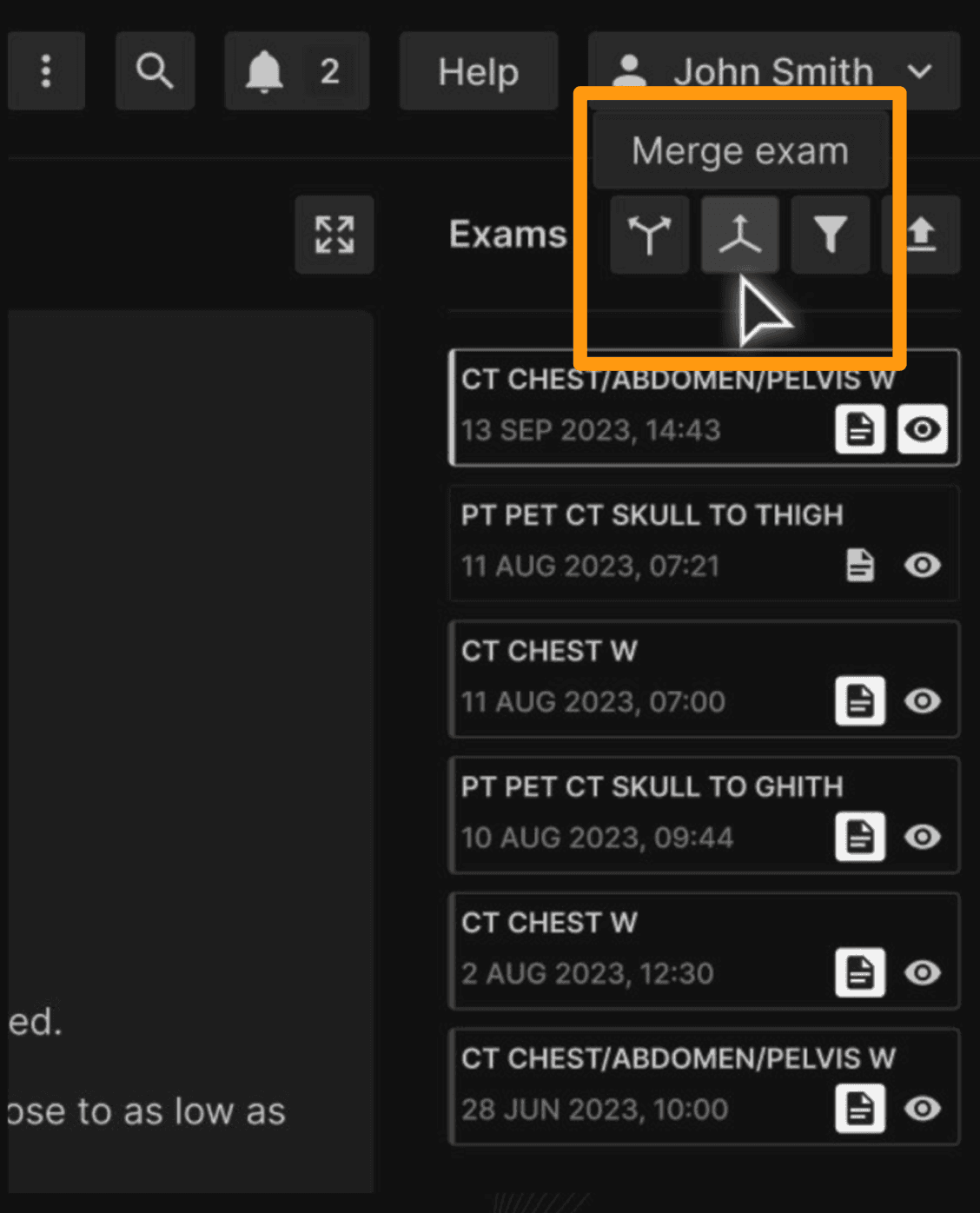• Merge can only be done with exams from the same patient.