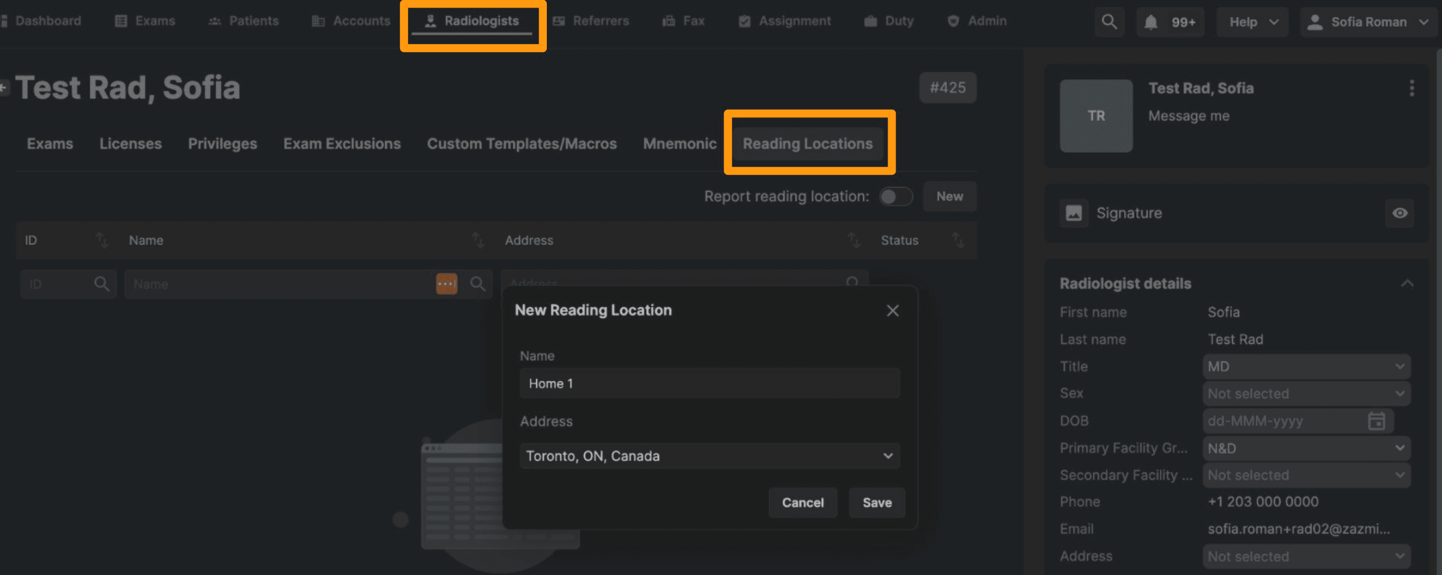 • Configure reading locations in Radiologist > Reading Locations tab.​