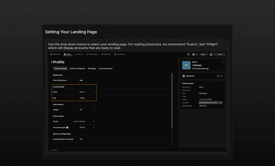 Guides users through accessing their profile, setting their landing page, and managing credentials.